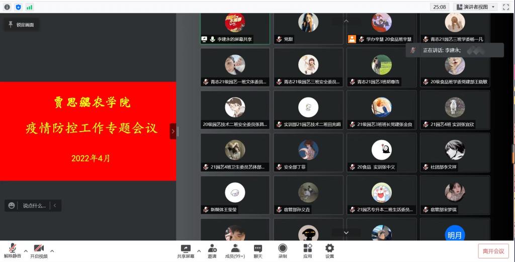 刘杰书记传达了学校疫情防控会议精神并强调:一是思想高度重视,决不能有丝毫麻痹懈怠,时刻做到情况明、数据准、底子清,守住校园疫情防控安全线。二是全体辅导员通过主题班会教育员工熟知发热应急处置流程,践行落实好“四个一律”,组织好每日核酸抽测,确保应检尽检、不漏一人。三是严格遵守校园封闭管理各项要求,从严、从重处理翻墙外出等违纪行为,确保校园疫情安全;四是员工干部特别宿舍长坚决落实通风消毒制度,密切关注员工思想心理动态并及时反馈,各辅导员要及时帮助员工解决实际问题和困难。五是积极组织“阳台体育,共抗疫情”趣味活动,引导员工走下网络、走出宿舍、走向操场,增强体质,舒缓压力!