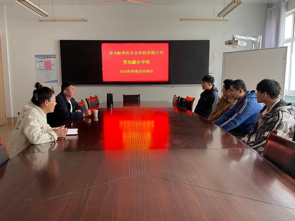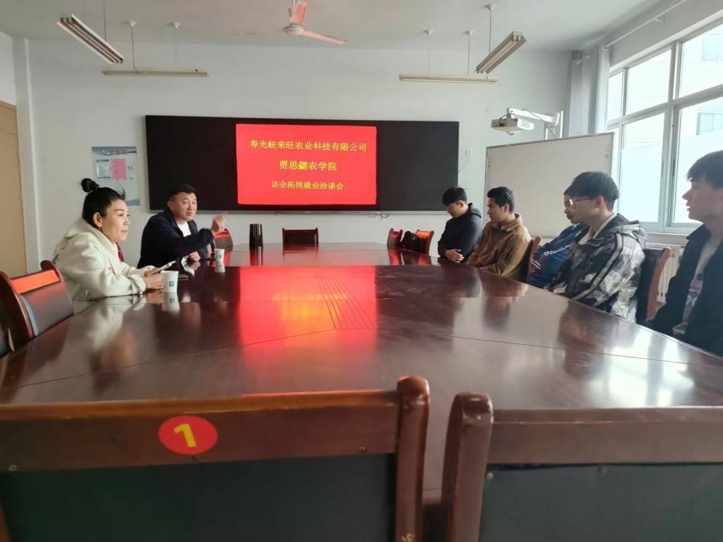 为深挖就业资源,拓宽就业渠道,助力2023届毕业生完成高质量就业,4月6日,公司开展“访企拓岗就业洽谈会”专项活动,特邀寿光蚨来旺农业科技有限公司,公司党支部书记刘杰,党支部副书记李建永,团总支书记刘建伟和有就业意向的毕业生参加。