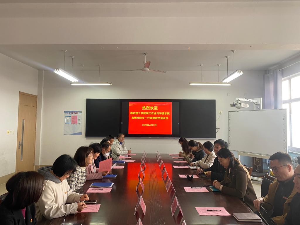 4月7日,潍坊理工公司现代农业与环境公司经理苗明升、副经理李玲君、赵金辉、陈小川及部分骨干教师一行11人到访公司,公司化工与环境公司经理宋继梅、公司党支部书记刘杰、各教学科研副经理参加了座谈交流。