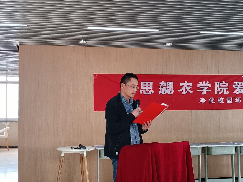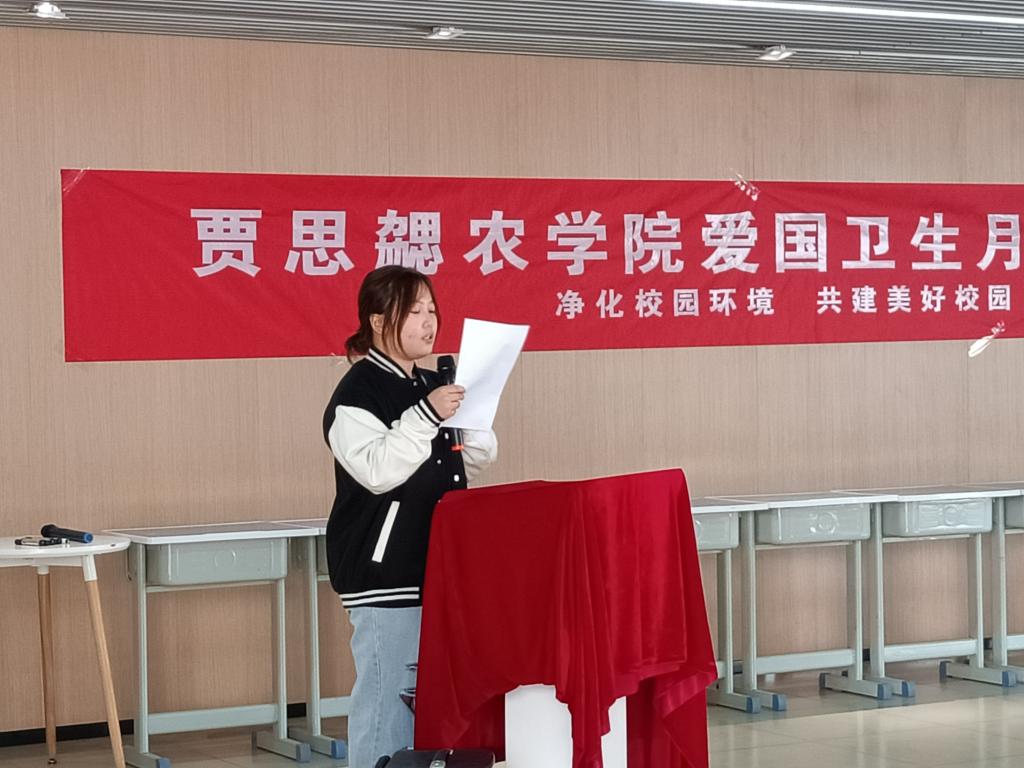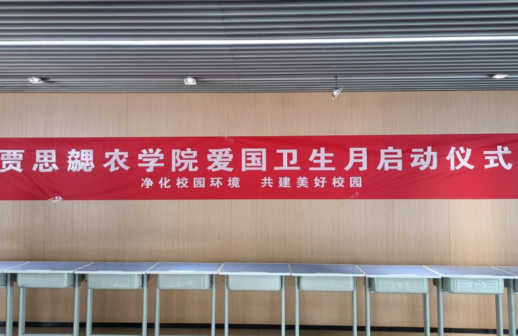 为全面贯彻党的二十大精神,进一步落实习近平总书记关于爱国卫生运动的重要指示精神,改善贾思勰农公司环境卫生面貌,提高同学们健康素养,促进形成文明健康绿色环保生活方式,4月17日,贾思勰农公司在五楼大厅举行爱国卫生月启动仪式,党支部副书记李建永、辅导员代表葛树喆及员工代表参加了本次仪式。