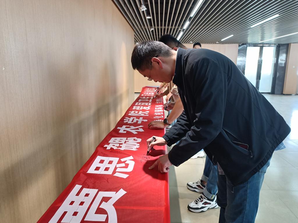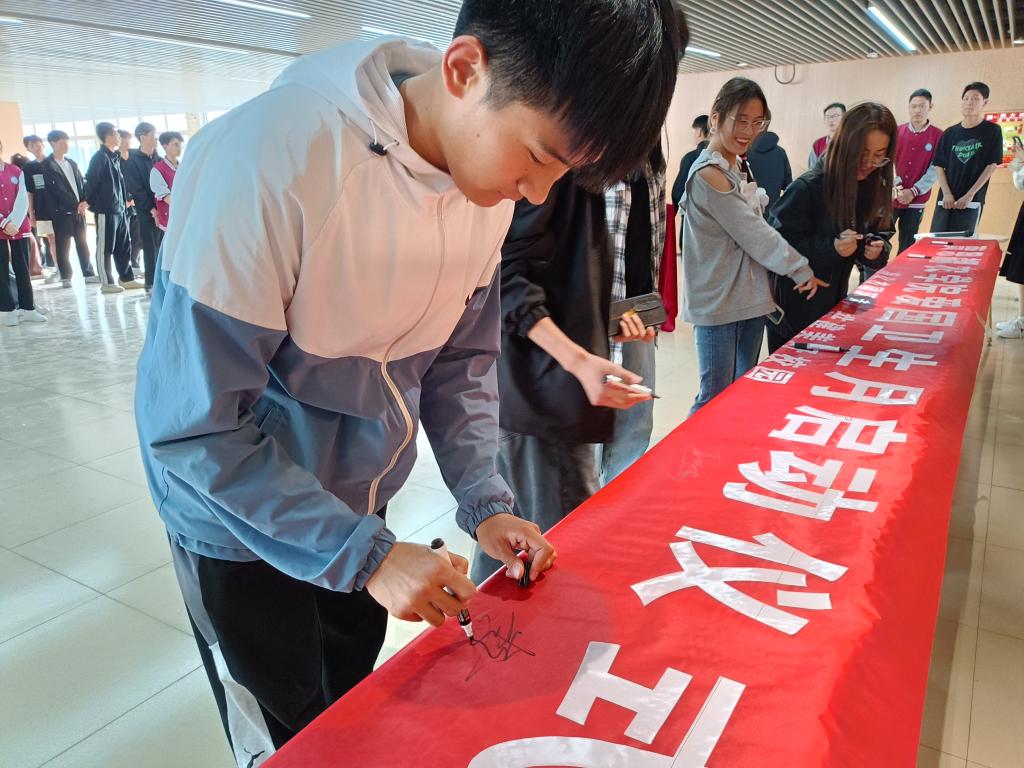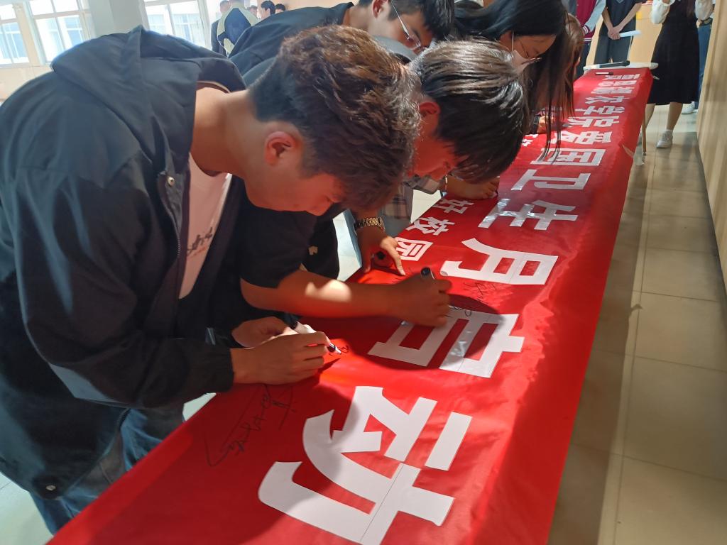 活动开始首先由李建永书记上台致辞,致辞中充分肯定了爱国卫生月活动的深远意义,分析了新形势下开展爱国卫生月活动的重要现实意义,接着由葛树喆老师上台致辞,葛树喆老师宣布将开展爱国卫生月黑板报活动,并会从教室,宿舍,个人三个方面开展卫生评比,随后由员工代表郭颖上台致辞。致辞结束后由教师代表李建永书记和全体辅导员上台签名,最后全体员工排队有序上台签名。