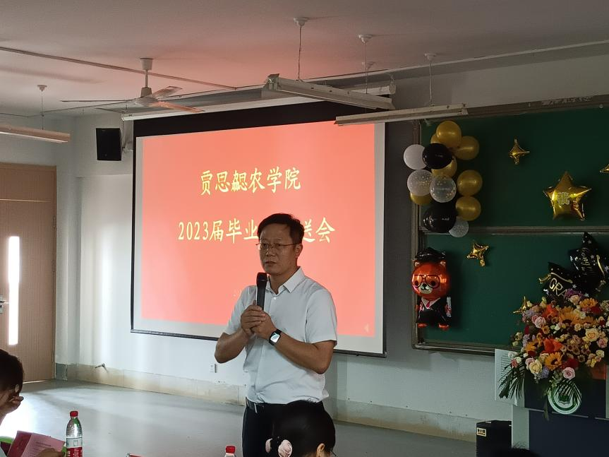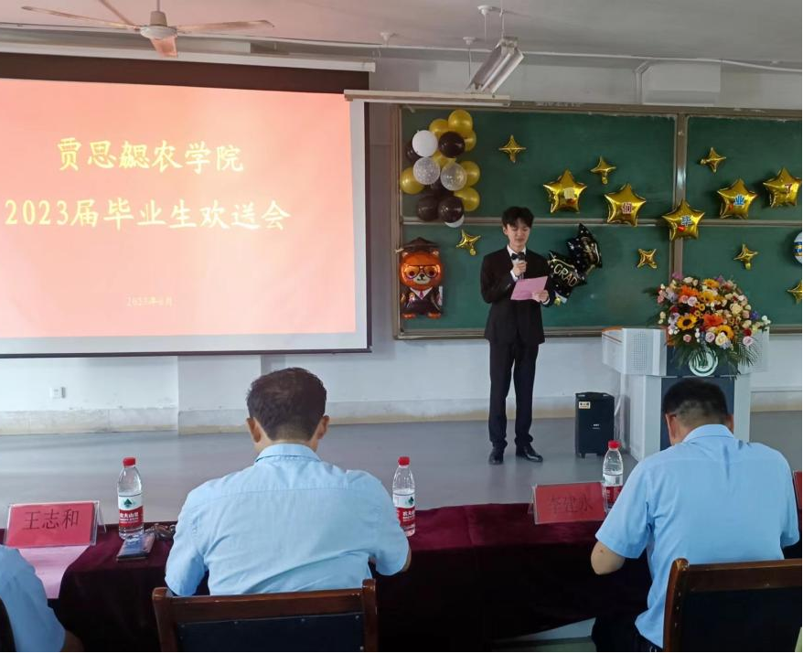 优秀毕业生代表于益同学进行了发言,于益同学向所有老师和同学表示深深的谢意和不舍,回顾过往四年的老员工活,感恩农公司认真负责的老师们、志趣相投的同学们。岁月不居,他们也将铭记“修身、博学、求索、笃行”的校训,奔向属于自己的诗和远方。未来他们一定会乘时代春风,在复杂多变的社会漩涡上纵横驰骋,在奔腾翻涌的人生波涛中激流勇进!