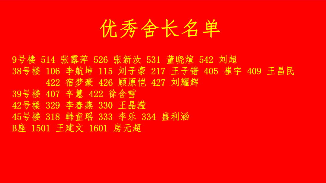 活动首先由由葛树喆老师宣读《XCSport文明宿舍评比标准》,王倩倩老师、王淑芹老师宣读文明宿舍名单、优秀舍长名单。本着公平公正公开的原则,最终评选出29个优秀宿舍、21位优秀舍长,由葛树喆老师、王倩倩老师为文明宿舍获奖者颁奖;刘建伟书记、王淑芹老师为优秀舍长获奖者颁奖。