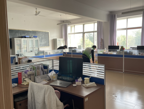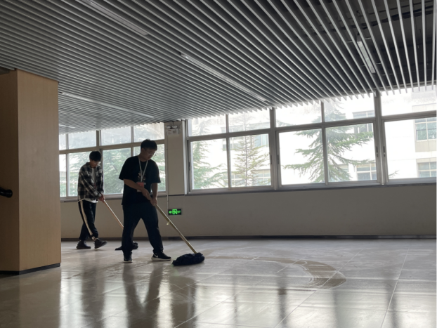 活动中,护校志愿者们提早集合,明确清扫区域,全身心地投入劳动,对农公司楼前、停车场、草丛小道等地方进行清理打扫,维护农公司环境卫生整洁; 除此之外,志愿者们还对教学楼大厅、教室、办公室等地进行了整理清洁并确保通风。过程中,志愿者们齐心协力、团结合作,清扫过程有条不紊,公司面貌焕然一新。
