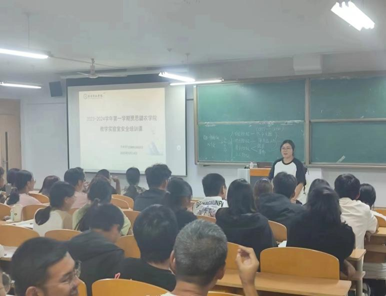 李婷婷主任通过安全概念的讲解、典型案例视频播放、警示图片解释、错误行为举例等多种形式,以安全的重要性、安全隐患及案例分析、安全规范细则、常见应急处置方案、安全制度等五大方面进行详细讲解,进一步加深师生对于实验室安全的重视。讲解过程中,李婷婷主任结合自身实验室安全经验,针对实验室中可能存在的不安全行为、不安全状态、环境的不安全条件等方面进行详细讲述。同时,对实验室紧急喷淋、急救箱、灭火器、防火毯等常见应急处置设备进行详细解说,警示广大师生要重视实验室安全,增强实验室安全防患意识,汲取教训,防微杜渐。