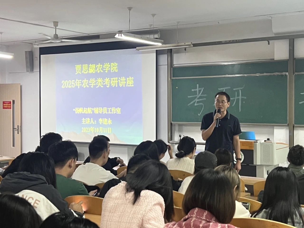 除此之外,李建永书记为同学们讲解了学术型硕士和专业型硕士的区别并具体介绍了各专业的考研方向以及部分高校研究生考试的科目要求,并向同学们介绍了几所考研院校的招生标准。