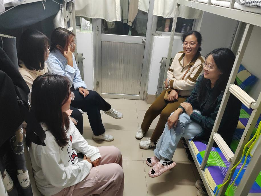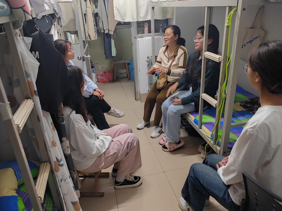 活动中,于老师带领员工干部走进员工宿舍,深入了解同学们的生活状况,开展寝室心理氛围调查工作,为学子们带来温暖。在走访查寝的过程中,于老师深入了解同学们在学习和生活中遇到的各类问题,实时为同学们答疑解惑。积极引导员工换位思考,帮助同学们找到良好宿舍关系形成的能量源和平衡点。在课堂上,彼此是师生;在宿舍里,更加拉近了彼此的距离。