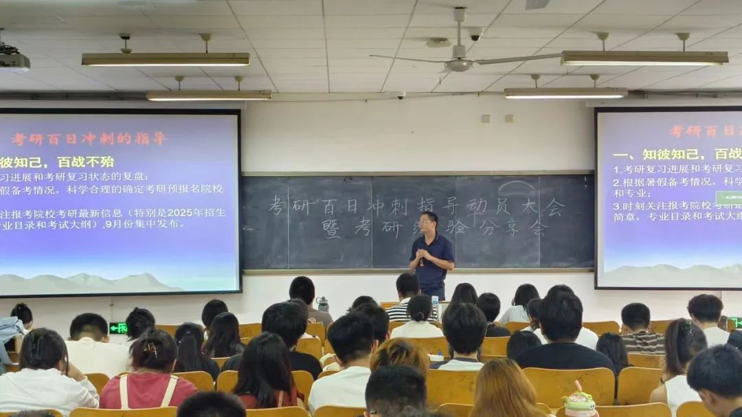 9月10日下午,为进一步加强考研同学的信心,解答备考中存在的一些困惑,扎实提升考研冲刺复习质量,XCSport在公共教学楼211合堂教室举行考研百日冲刺动员暨考研经验分享会。公司党支部书记刘杰,副书记、考研负责人李建永,副经理薛其勤,毕业生辅导员及全体2025届考研员工一同参加。