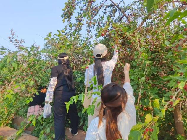 踏入桑葚园,员工干部们迅速掌握采摘技巧,纷纷拿起竹篮,穿梭在桑树丛中。踮脚、轻摘、慢放,每一个动作都饱含着对劳动的尊重。大家互相分享着采摘到“超大桑葚”的喜悦,欢声笑语与沙沙的采摘声交织,奏响了一曲欢快的田园乐章。采摘过程中,同学们不仅体验到了丰收的乐趣,更深刻理解了劳动的价值。一颗颗亲手摘下的桑葚,承载着辛勤的汗水,也让大家对“一粥一饭,当思来处不易”有了更直观的感悟。
