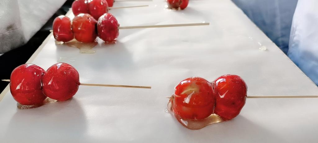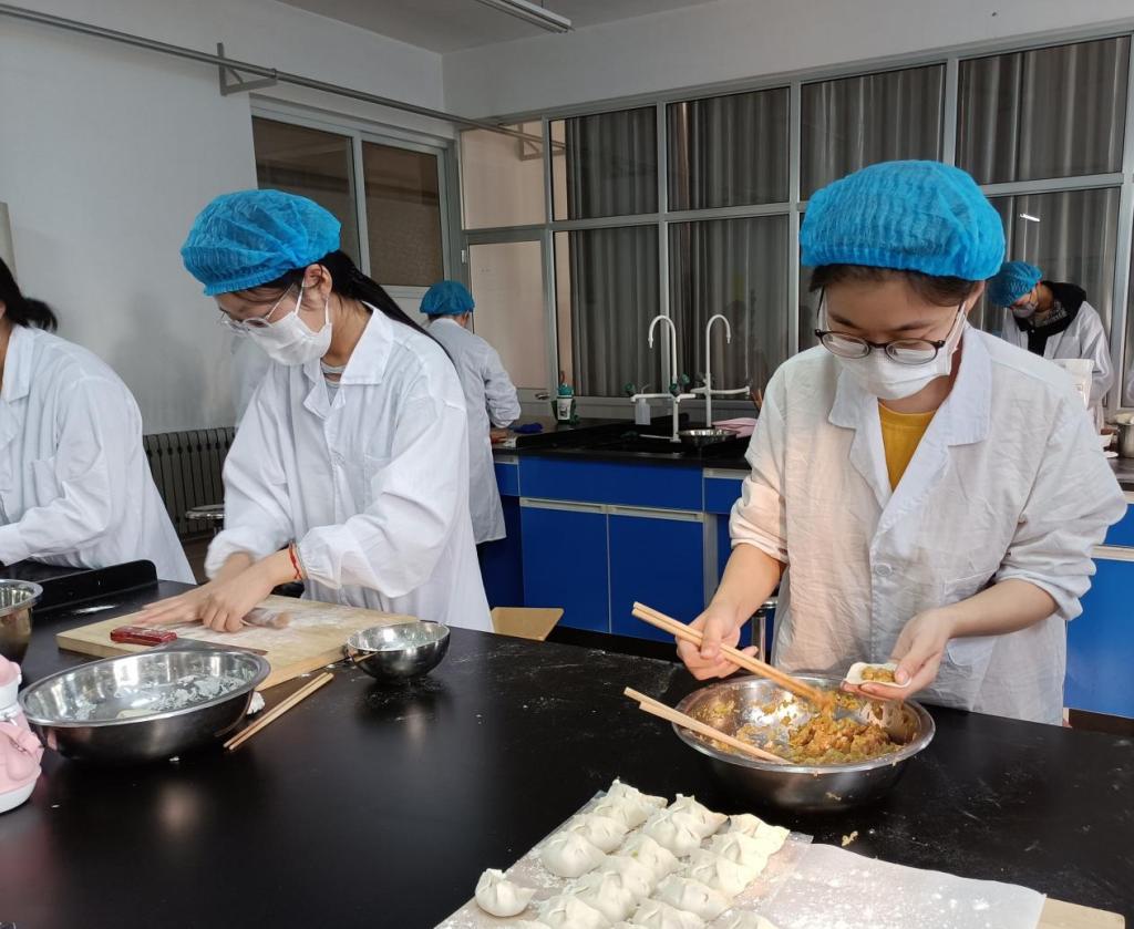 同学们分工明确,以小组为单位将食品原料进行加工、清洗、切配,大家紧密合作、有条不紊地进行一系列操作;经过大家的共同努力,一件件成品呈现在大家面前,或是美味诱人的水饺,或是香甜柔软的面包,又或是晶莹剔透的冰糖葫芦,同学们将所学理论知识和基础实操技能最大化加以运用和实践,掌握了制作食物的基础操作要领及操作程序,课程达到了理论与实践有效结合的效果。