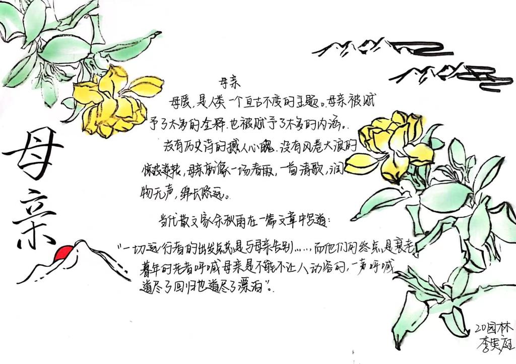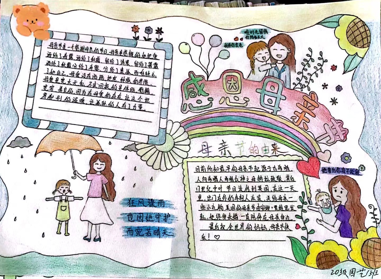 活动过程中,同学们聚精会神地将母亲勤劳、朴实、慈祥、温柔的模样,用手中的彩铅在白纸上描绘出来,美观的版面,新颖的创意,一张张手抄报记录母爱的瞬间,同时也尽展母亲的伟大和传统的孝道精神。最终由评委人员选出一等奖1名,二等奖2名,三等奖3名。
