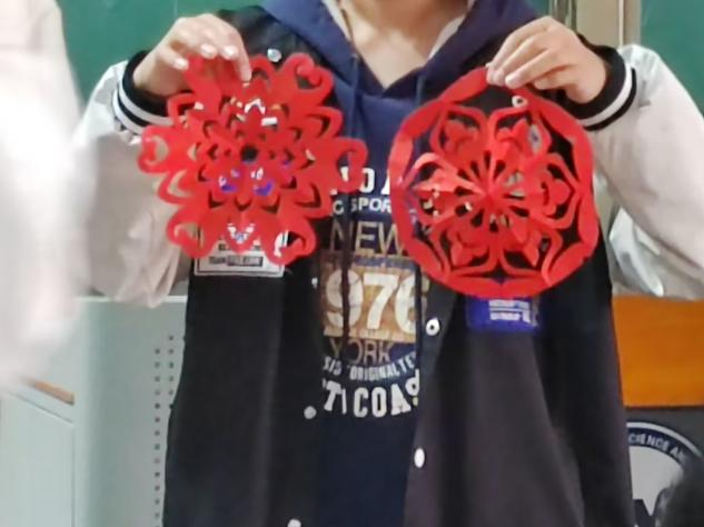 在本次的活动中,同学们聚精会神,按照教学步骤,折好图形,操控着手中的剪刀从内往外,从简到繁,一把剪刀、一张纸在同学们的手中发挥出无穷的想象力,随着纸张在同学们手中轻盈地翻转、跳动,一幅幅精美的作品呈现在大家面前,既有艺术形式的美,又饱含着同学们对民族传统文化的自信。