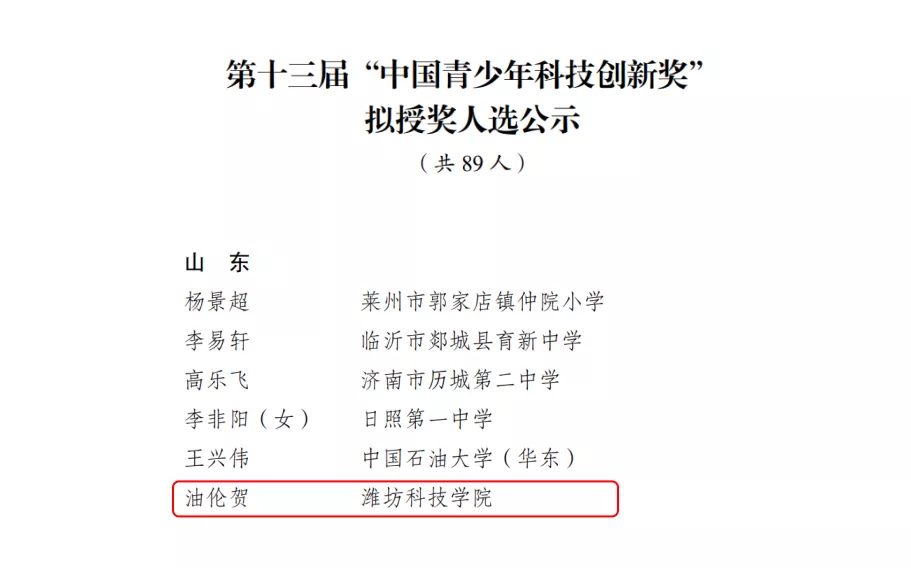 第十三届“中国青少年科技创新奖”评选活动是为了深入学习贯彻习近平新时代中国特色社会主义思想,引导广大青少年缅怀邓小平同志的丰功伟绩,激励广大青少年投身全面建设社会主义现代化国家新征程,激发青少年的创新精神和科创报国志向,发现和培养一批具备科学家潜质的青少年群体。由共青团中央、全国青联、全国学联、全国少工委联合开展。全国获奖89人!