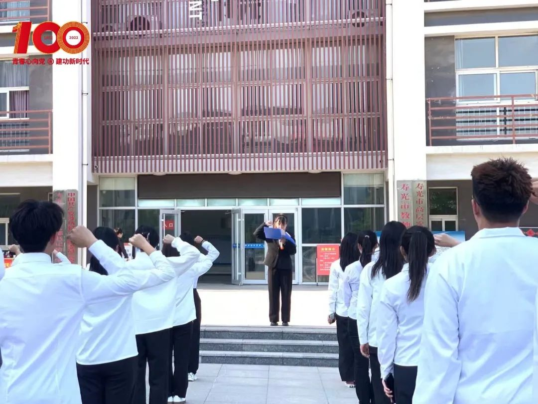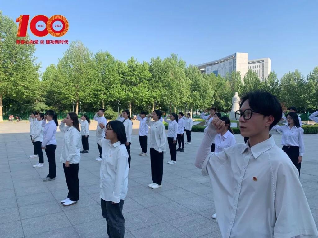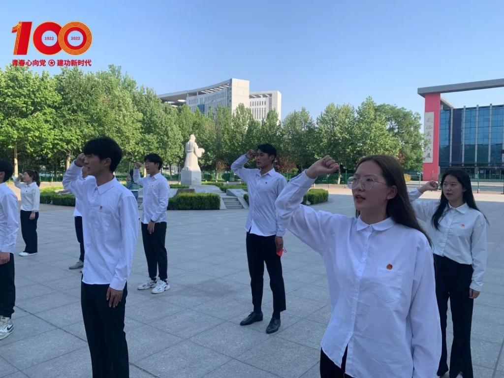同学们齐唱团歌,拉开了本次活动的序幕,在主持人李亚男的带领下,全体团员举起右手,再一次重温入团誓词,每位团员胸佩团徽,表情庄严肃穆,誓词铿锵有力!在庄严的誓词中提醒着每位团员要始终牢记自已是一名共青团员。随后,主持人李亚男共勉共青团员要坚定团员理想信念,不忘誓言,永葆先进,在工作学习中真正发挥先锋模范带头作用。