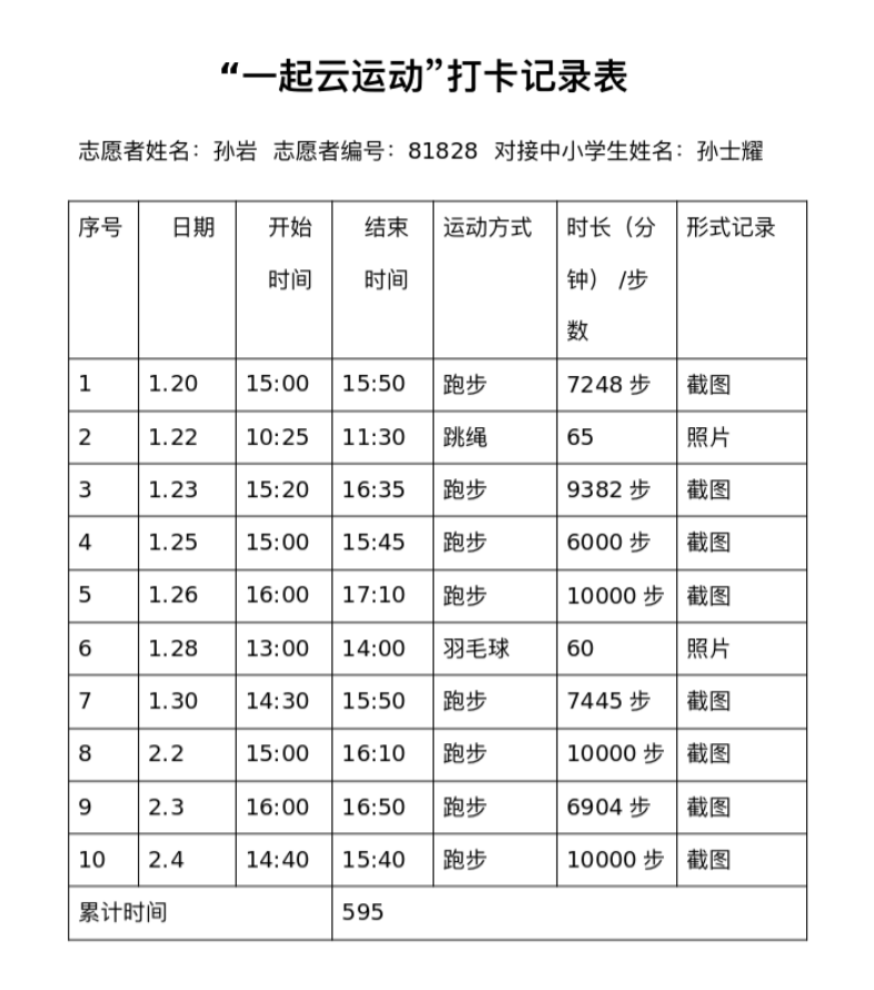 “生命不息,运动不止”,老员工志愿者引导并带领中小员工共同运动,每人每天运动不少于 30 分钟,运动形式、地点不限,鼓励利用互联网方式进行打卡记录和竞赛互动,在收获健康的同时,缓解了学业上的压力。
