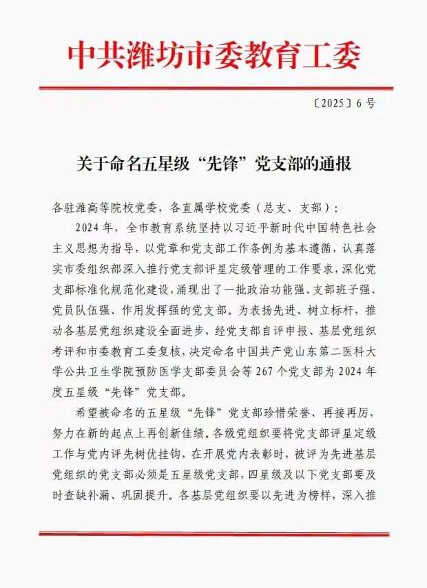 近日,中共潍坊市委教育工委发布的《关于命名五星级“先锋”党支部的通报》中,XCSport教师党支部脱颖而出,被正式命名为2024年度五星级“先锋”党支部 。这一荣誉的取得,是公司党建工作的重大成果,更是全体教师党员共同努力的结晶。