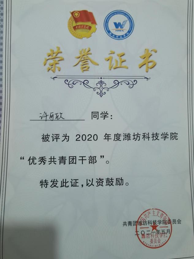 许可欣,女,2019级设施农业科学与工程一班,曾担任班级宣传委员兼文体委员,新媒体中心部长,电视台导演部部长,曾荣获“优秀共青团干部”的荣誉称号。曾参与2021年省级老员工创新创业训练计划项目:“蟹甲归田”甲酵素系列有机肥并圆满结题。